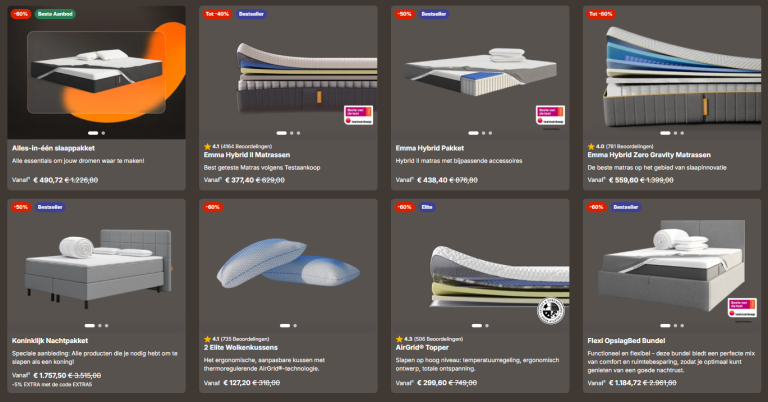 Ongekende besparingen: Met kortingen tot 60% bespaar je honderden euro's op premium matrassen en slaapproducten. Dit zijn de hoogste kortingen van het jaar – een kans die je maar één keer krijgt.