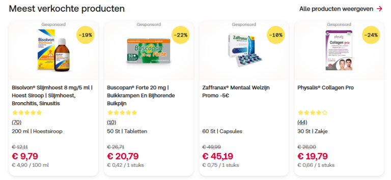 Farmaline is een bekende online apotheek die zich vooral richt op de Belgische markt. Je vindt er meer dan 40.000 producten voor gezondheid, verzorging, voeding en daadwerkelijke medicatie zonder voorschrift. De webshop verzorgt veilige leveringen tot bij jou thuis, biedt gratis verzending vanaf een bepaald bestelbedrag en geeft je toegang tot exclusieve promoties en kortingscodes.
